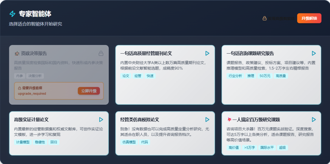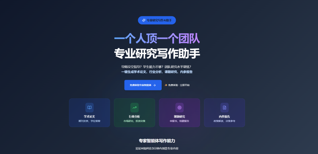 🔹中财数碳财经专家智能体平台(https://ra.ecoaitech.com/)专业研究写作助手,适合自由研究/行业分析/学术论文/内参建议/自媒体