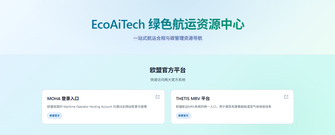 🔹 EcoAiTech 绿色航运资源聚合网站(https://ship.ecoaitech.com/hub)