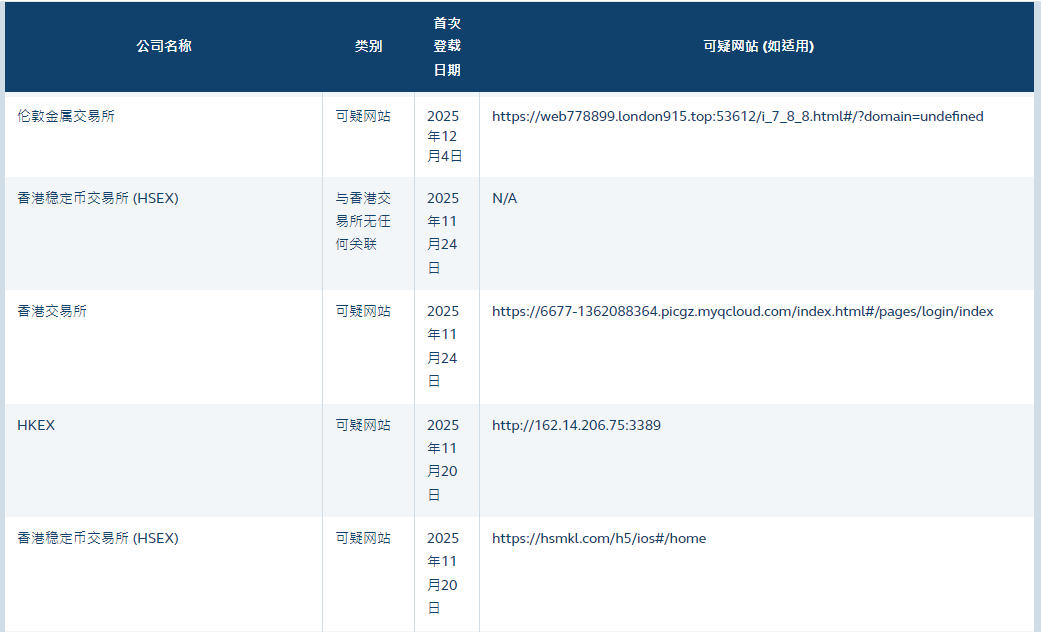 事实上,今年5月、10月,香港交易所先后两次将煜志金融列入可疑网站。今年11月,香港交易所澄清,与香港稳定币交易所无任何关联,且将其列入可疑网站系列。据了解,目前香港实质运营的只有HashKey和OSL两家虚拟货币交易所,均明确规定不面向中国内地居民开展业务。